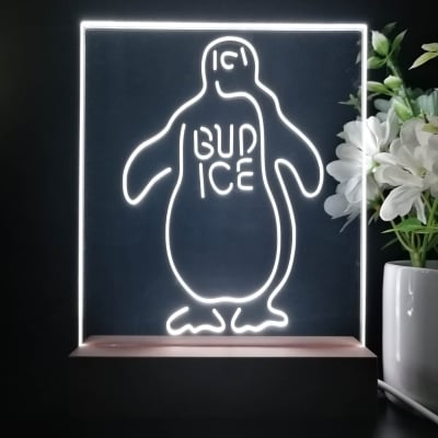 Bud Ice Penguin Beer Night Light Neon Pub Bar Lamp